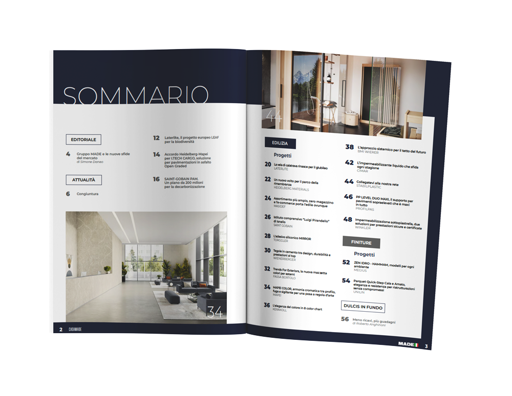 Gruppo Made ha a cuore lo sviluppo sostenibile del settore dell’edilizia, perché è conscio che sarà il business del futuro. La sostenibilità ambientale, l’utilizzo di materiali e soluzioni a basso impatto, la lotta agli sprechi e i principi dell’economia circolare sono alcuni degli obiettivi primari del Gruppo per i prossimi anni.