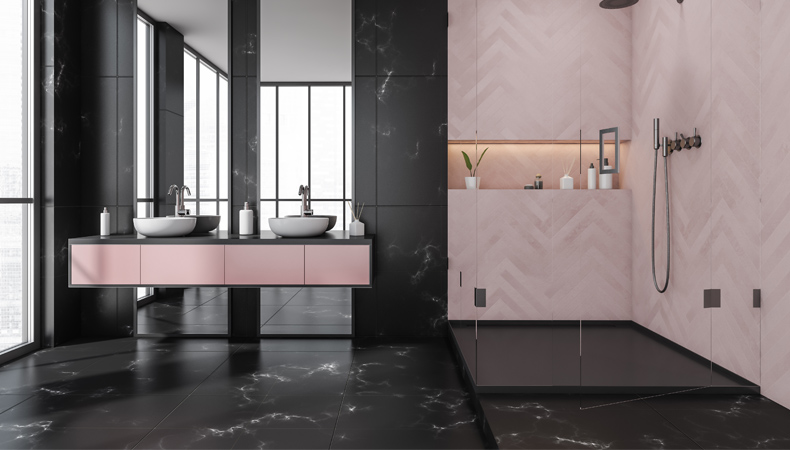 È meglio preferire mattonelle in pietra dalle sfumature antracite, nero carbone, grigio chiaro o anche verde petrolio per dare personalità all’ambiente.