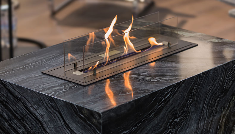Il biocamino conserva lo charme della fiamma ma elimina tutti gli inconvenienti legati alla legna che arde: nessun vincolo di installare la canna fumaria, niente fumo, cenere e fuliggine!