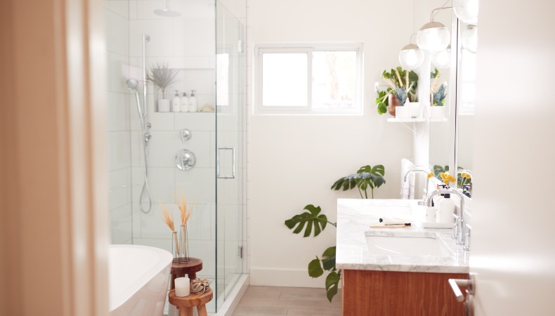 Una via di mezzo tra i prodotti più basici e quelli più lussuosi potrebbe essere un comodo box doccia ad angolo 90×90 cm, con sistema ad ante scorrevoli per aumentare lo spazio vitale all’interno della cabina.