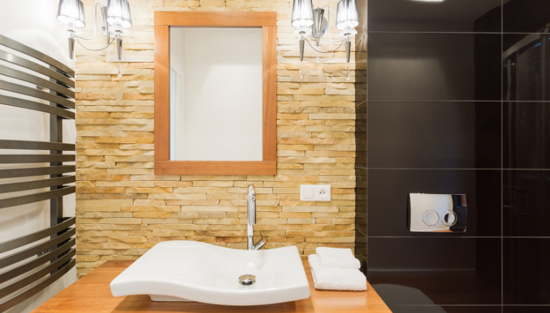 Con le pareti in pietra levigata l’effetto moderno è garantito, ma si corre il rischio di rendere l’ambiente un po’ freddo.