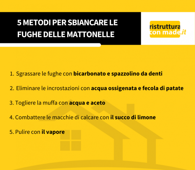 Se le macchie sulle fughe sono dovute al calcare, un ottimo rimedio è il succo di limone, da tamponare direttamente sulle zone interessate e da lasciar agire per almeno mezz’ora.