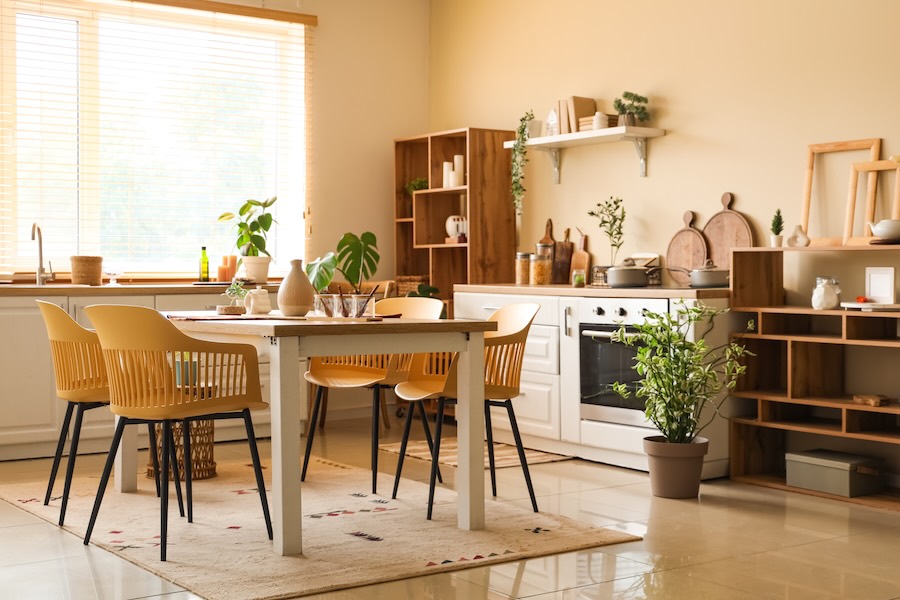 Le tonalità calde come il giallo senape o il rosso mattone stimolano l’appetito e creano un’atmosfera accogliente, ma vanno dosate con attenzione. Meglio usarle su una sola parete o in abbinamento a colori più neutri per evitare un effetto troppo dominante.