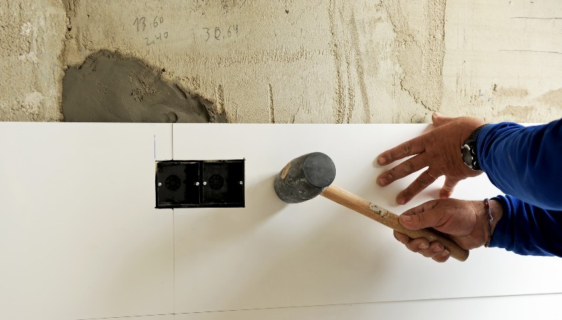 Una volta completata la costruzione dei vari moduli in cartongesso che andranno a comporre la cucina, gli stessi vengono stuccati, rasati e trattati in modo da diventare impermeabili all’acqua e all’umidità.