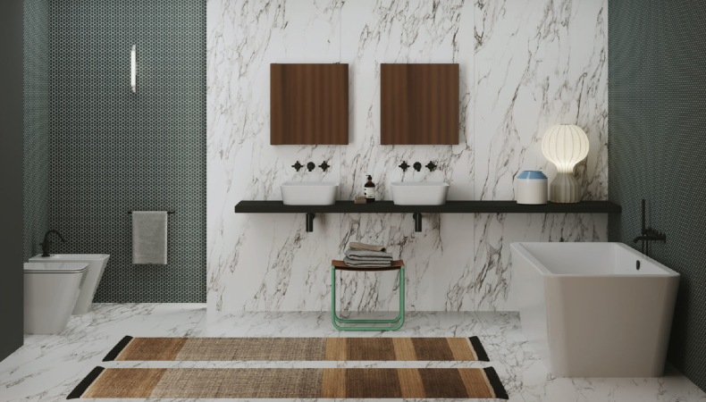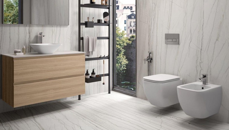 Le varie forme e misure dei sanitari sospesi permettono di arredare il bagno in base alla sua dimensione e dare libero sfogo a stile e fantasia.
