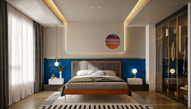 Puoi sfruttare il potere del colore anche per creare dei punti focali nella camera da letto, ad esempio:
