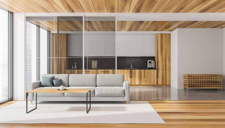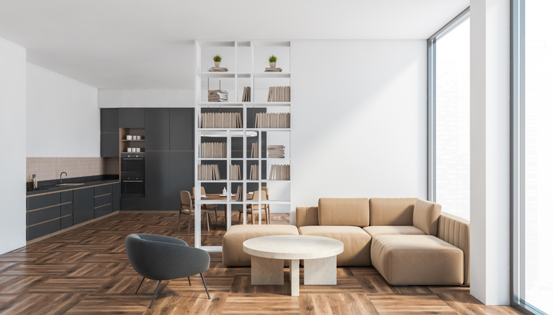 Ecco le nostre soluzioni per dividere soggiorno e cucina in modo intelligente e funzionale senza ricorrere ad opere murarie.
