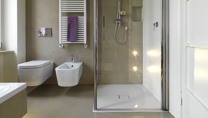 Per un luogo come il bagno, soggetto a umidità e vapore acqueo, diventa fondamentale impiegare rivestimenti resistenti alle sollecitazioni di un uso frequente e con un buon livello di impermeabilità. La resina possiede entrambe le caratteristiche.