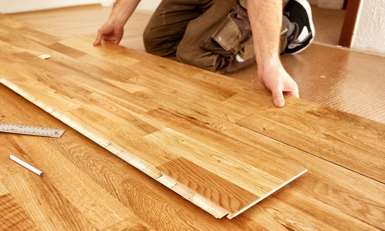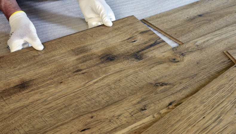 Le tavole vengono posate a secco per realizzare il pavimento flottante.