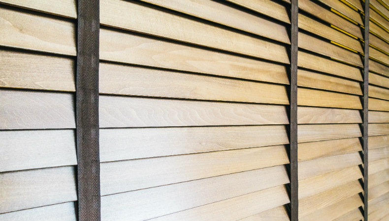 Le persiane in legno portano appresso un fascino intrinseco, che richiama tanti scorci squisiti del bel paese: centri storici assolati in cui l’architettura delle facciate si compone della verticalità dei palazzi e dell’orizzontalità delle lamelle, ripetuta e coerente.