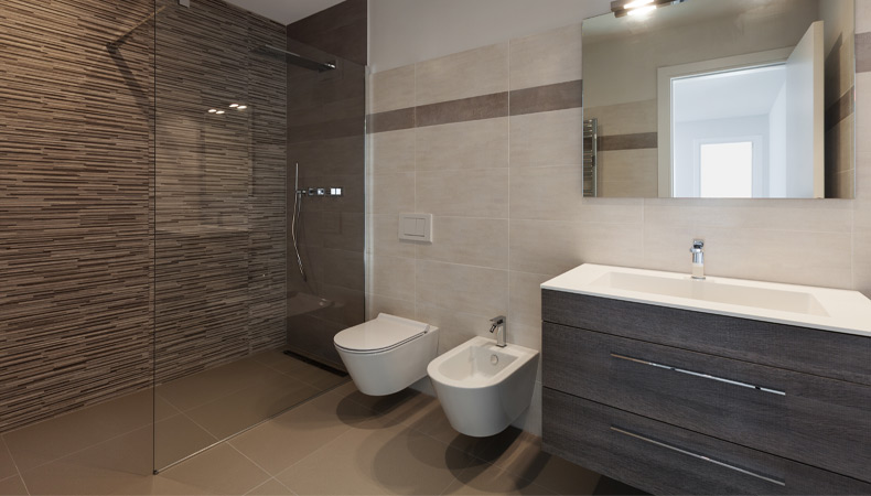 Sarà possibile, e sicuramente d’effetto, anche abbinare piastrelle in tinta unita e di colore chiaro con maioliche a creare uno stacco e una sorta di tappeto.