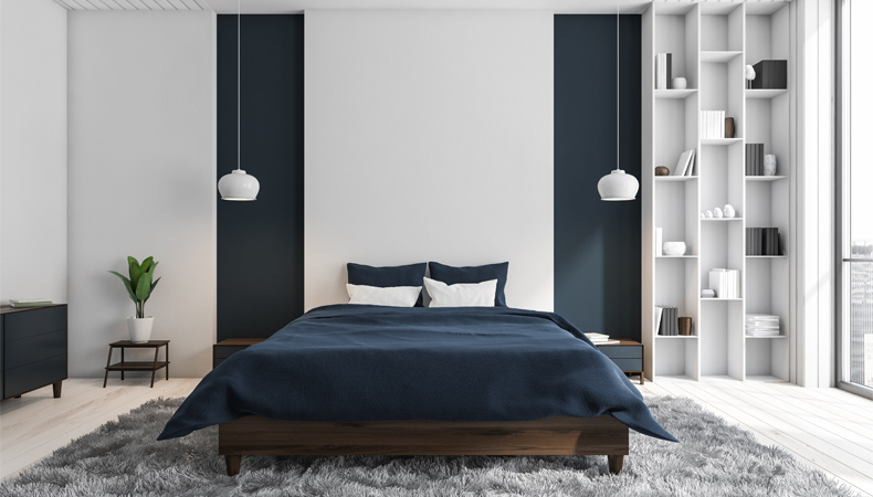 Il minimalismo della camera da letto moderna si traduce nella quasi totale assenza dei mobili tradizionali.