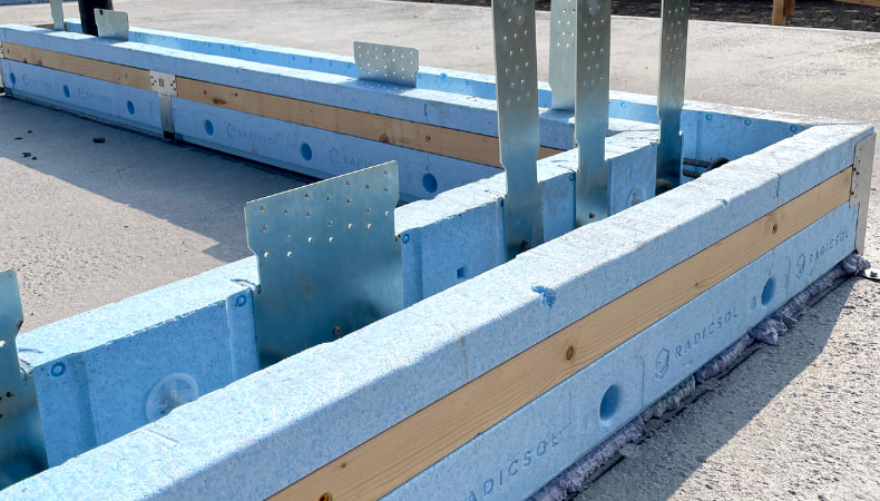 Radicsol permette di rialzare, isolare e ancorare adeguatamente il piede di parete a terra, mette al sicuro da umidità, allagamenti esterni, interni e condense, garantisce l’isolamento e la durata dell’edificio e, infine, migliora la sicurezza statica grazie alle staffe integrate nel getto.