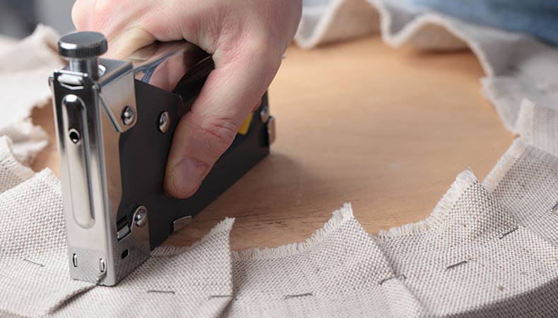 L’impiego tipico della pinzatrice da tappezziere riguarda l’operazione di fissaggio dei tessuti o delle imbottiture al telaio di un divano, una sedia o una poltrona.