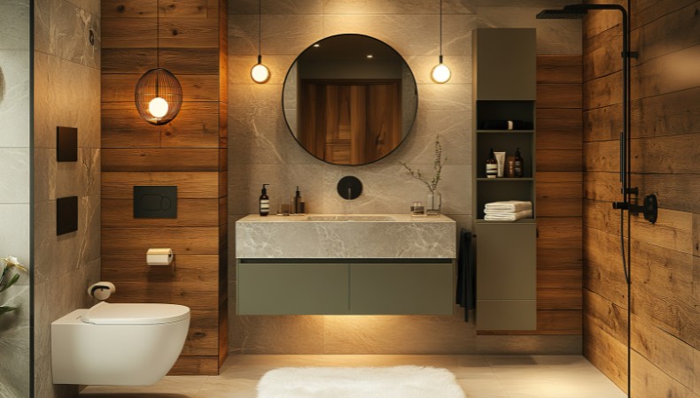 Il listellare trattato può essere utilizzato anche in ambienti interni particolarmente umidi, come bagni o cucine, per creare mobili o rivestimenti resistenti e duraturi. Ad esempio per la creazione di una parete divisoria in una doccia walk-in, dove l’acqua potrebbe danneggiare il legno tradizionale.
